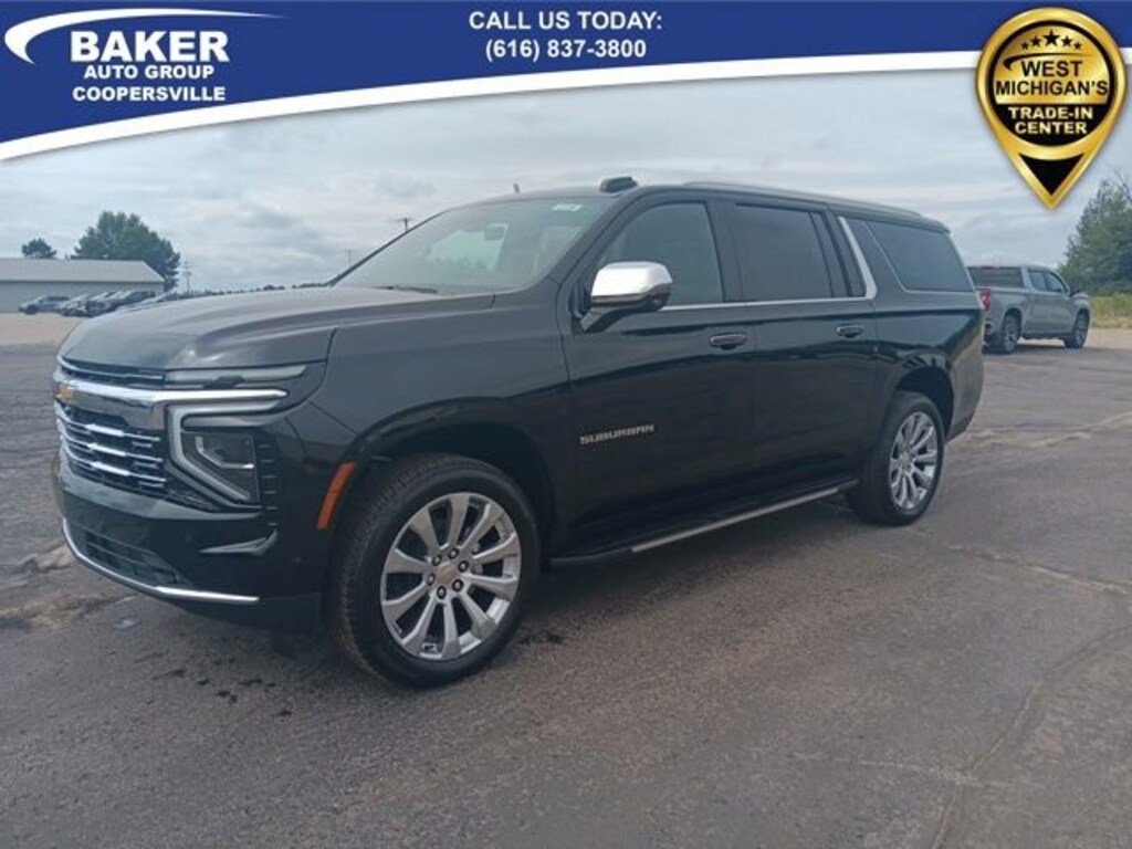 Black 2025 Chevrolet Suburban Premier 4WD 10-Speed Automatic with Overdrive EcoTec3 6.2L V8 Suburban Premier, 4D Sport Utility, EcoTec3 6.2L V8, 4WD, 15 Diagonal Multi-Color Head-Up Display, 2-Speed Active Electronic AutoTrac Transfer Case, 3rd Row 60/40 Power-Folding Split-Bench, 4-Way Power Driver Lumbar Seat Adjuster, 4-Way Power Front Passenger Lumbar Seat Adjuster, 8-Way Power Front Passenger Seat Adjuster, Advanced Security Package, Advanced Trailering Package, Auto-Dimming Inside Rear-View Mirror, AutoSense Hands-Free Power Liftgate, Blind Zone Steering Assist w/Trailering, Bose 10-Speaker Surround w/CenterPoint, Bright Front & Rear Door Sill Plates, Chrome Door Handles w/Body-Color Strip, Chrome Mirror Caps, Dual Exhaust System, Dual-Pane Power Panoramic Sunroof, Front LED Fog Lamps, Glass Breakage Sensor, Heated 2nd Row Outboard Seats, Heated Driver & Front Passenger Seats, Heated Power-Adjustable Outside Mirrors, Heated Steering Wheel, Hill Descent Control, Hitch View w/Pan/Zoom Image Adjustment, Inside Rearview Auto-Dimming Rear Camera Mirror, Integrated Trailer Brake Controller, LED Headlamps w/LED Daytime Running Lamps, LED Tail Lamps, Max Trailering Package, Memory Settings, Navigation system: Google built-in compatibility (select service plan required, terms and limitations apply), Perforated Heated & Ventilated Seats, Power Release 2nd Row Bucket Seats, Power Tilt & Telescopic Steering Column, Power-Sliding Center Floor Console, Preferred Equipment Group 1LZ, Rear Power Liftgate, Rear Seat Media System, Self-Powered Horn Theft-Deterrent Alarm System, Smart Trailer Integration Indicator, Technology & Entertainment Package, Technology Package, Universal Home Remote, Vehicle Inclination Sensor, Vehicle Interior Movement Sensor, Wheel Locks (Set of 4) (LPO), Wheels: 22 x 9 Manoogian Silver Painted Alum, Wireless Phone Charging.Recent Arrival!