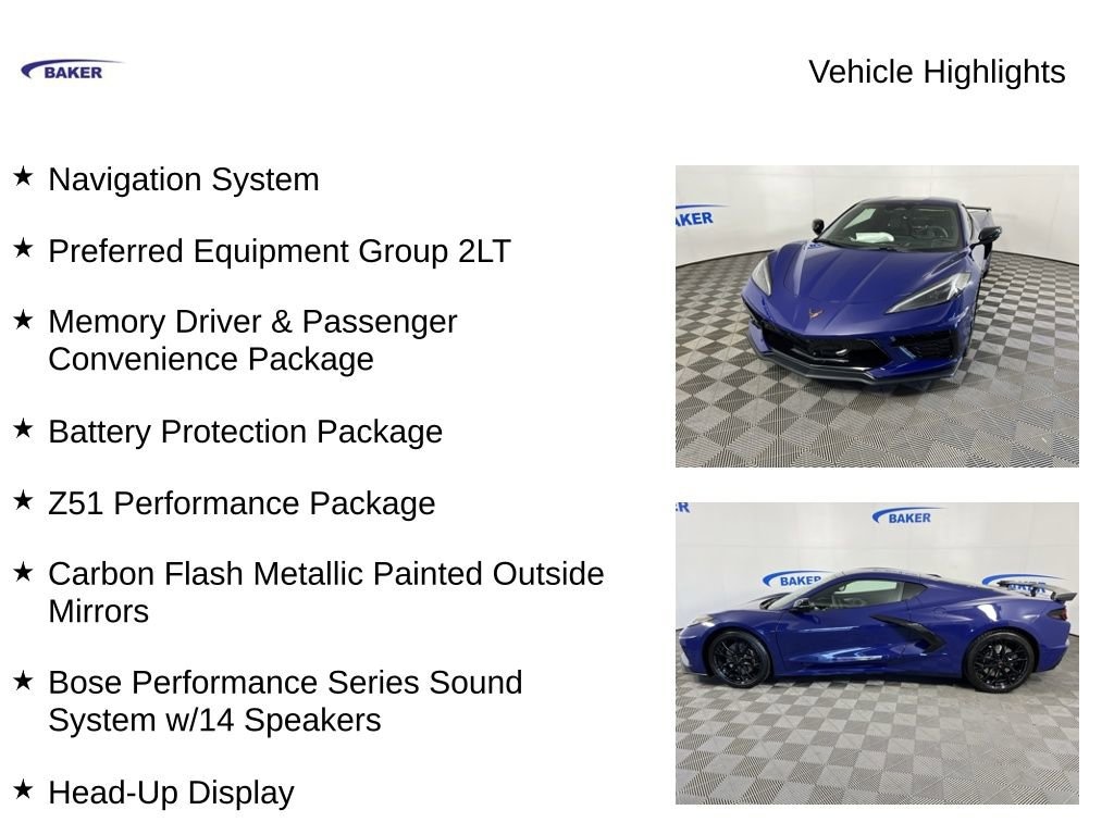 Hysteria Purple Metallic 2026 Chevrolet Corvette Stingray 2LT RWD 8-Speed Dual Clutch 6.2L V8 Corvette Stingray 2LT, 2D Coupe, 6.2L V8, 8-Speed Dual Clutch, RWD, Hysteria Purple Metallic, Black Leather, 2 Cargo Nets, Battery Protection Package, Bose Performance Series Sound System w/14 Speakers, Carbon Flash Metallic Painted Outside Mirrors, Carbon Flash Metallic-Painted Outside Mirrors, Driver Power Bolster Seat Adjuster, Electrical Theft Deterrent System, Electronic Limited-Slip Differential, HD Front & Rear Vision Cameras, Head-Up Display, Heated & Vented Driver & Passenger Seats, Heated Steering Wheel, Heavy-Duty Cooling System, Memory Driver & Passenger Convenience Package, Navigation System, Passenger Power Bolster Seat Adjuster, Performance Data & Video Recorder, Performance Exhaust w/Stainless-Steel Tips, Performance Rear Axle Ratio, Power Driver Lumbar Control Seat Adjuster, Power Passenger Lumbar Control Seat Adjuster, Power-Adjustable Outside Heated Mirrors, Preferred Equipment Group 2LT, Rear Cross Traffic Alert, Rear Z51 Spoiler, Side Blind Zone Alert, Universal Home Remote, Vehicle Inclination Theft Deterrent Sensor, Vehicle Interior Movement Theft Deterrent Sensor, Wireless Phone Charging, Z51 Performance Brakes, Z51 Performance Package, Z51 Performance Suspension.