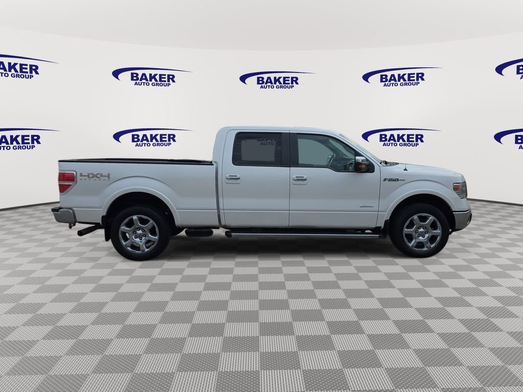 F-150 Lariat, 4D SuperCrew, 3.5L V6, 4WD, White Platinum Clearcoat Metallic, Black Leather, 18 Chrome-Clad Aluminum Wheels, 4x4 Off-Road Decal, 6 Chrome Angular Step Bars, Body-Color Door Handles w/Chrome Strap, Chrome Exhaust Tip, Electronic Locking w/3.55 Axle Ratio, Electronic Stability Control, Equipment Group 502A Luxury, Front & Rear Off-Road Tuned Shock Absorbers, GVWR: 7,350 lbs Payload Package, Heated front seats, Heated Power Exterior Mirrors w/Memory, High-Intensity Discharge Headlamps, Hill Descent Control, Lariat Chrome Package, Lariat Plus Package, Leather-Trimmed 40/20/40 Front Seat, Leather-Trimmed Bucket Seats, Memory seat, Navigation, Off-Road Package, Pedal memory, Power driver seat, Power Moonroof, Power passenger seat, Power steering, Power windows, Radio: Sony Single-CD w/HD, Remote keyless entry, Steering wheel mounted audio controls, SYNC Voice Activated Communication & Entertainment, Trailer Brake Controller, Universal Garage Door Opener.