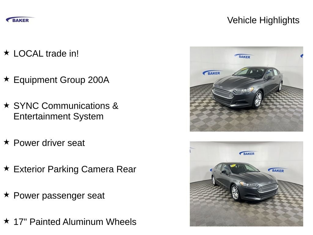 New Price! Magnetic 2015 Ford Fusion SE FWD 6-Speed Automatic 1.5L EcoBoost LOCAL trade in!, Fusion SE, 1.5L EcoBoost, 6-Speed Automatic, FWD, 17 Painted Aluminum Wheels, Equipment Group 200A, Exterior Parking Camera Rear, Power driver seat, Power passenger seat, SYNC Communications & Entertainment System.