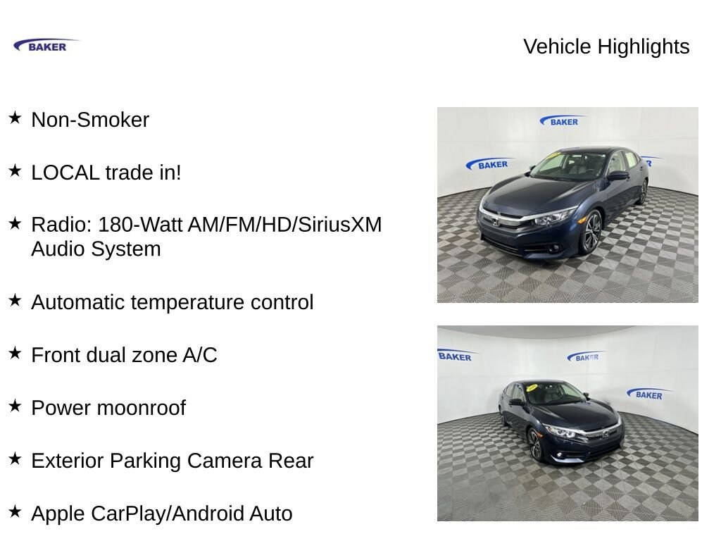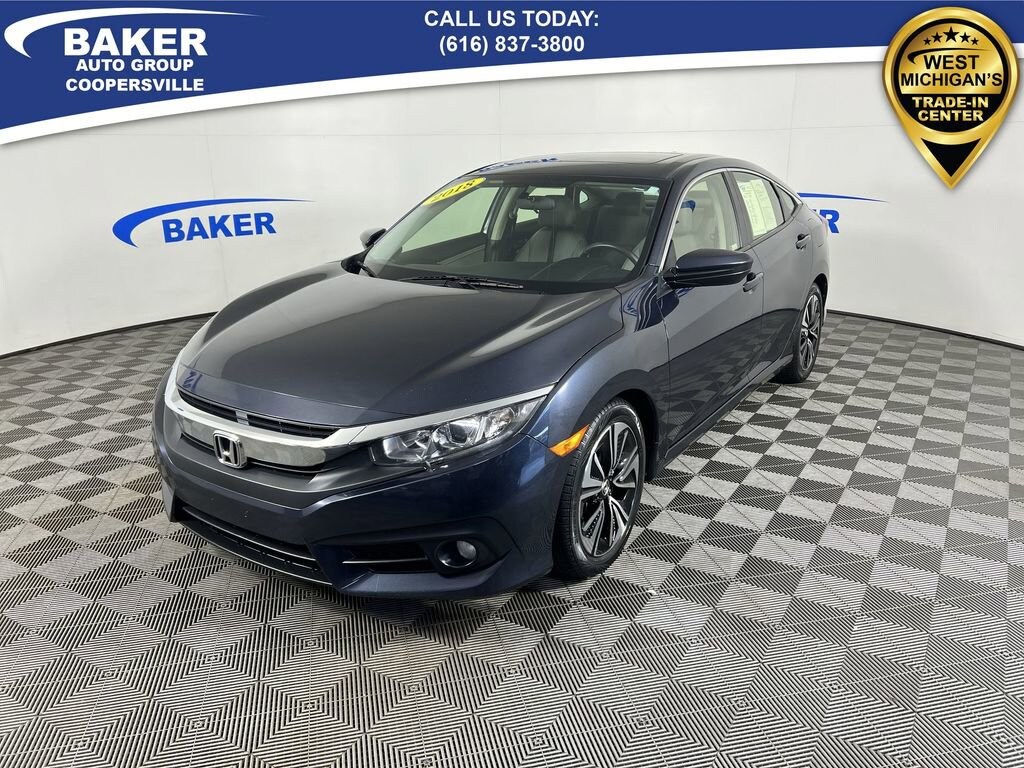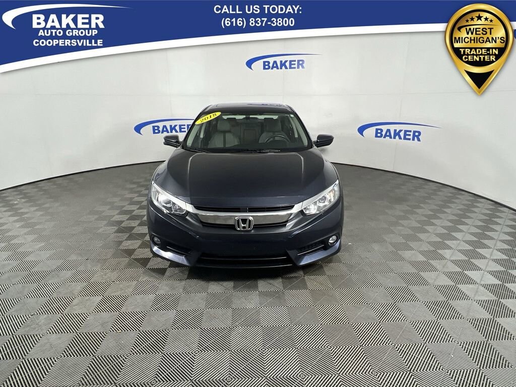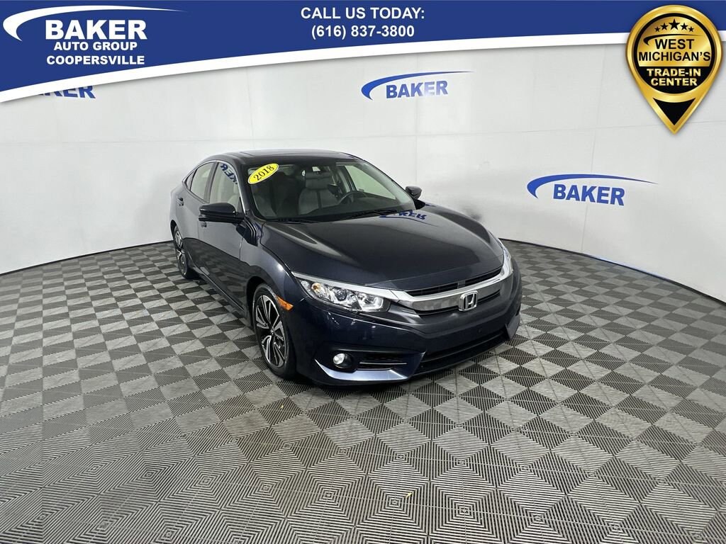 Dark Blue 2018 Honda Civic EX-T FWD CVT 1.5L I-4 DI DOHC Turbocharged Non-Smoker, LOCAL trade in!, Civic EX-T, 1.5L I-4 DI DOHC Turbocharged, CVT, FWD, Dark Blue, Gray w/Cloth Seat Trim, 17 Alloy Wheels, Apple CarPlay/Android Auto, Automatic temperature control, Exterior Parking Camera Rear, Front dual zone A/C, Heated front seats, Power moonroof, Radio: 180-Watt AM/FM/HD/SiriusXM Audio System.